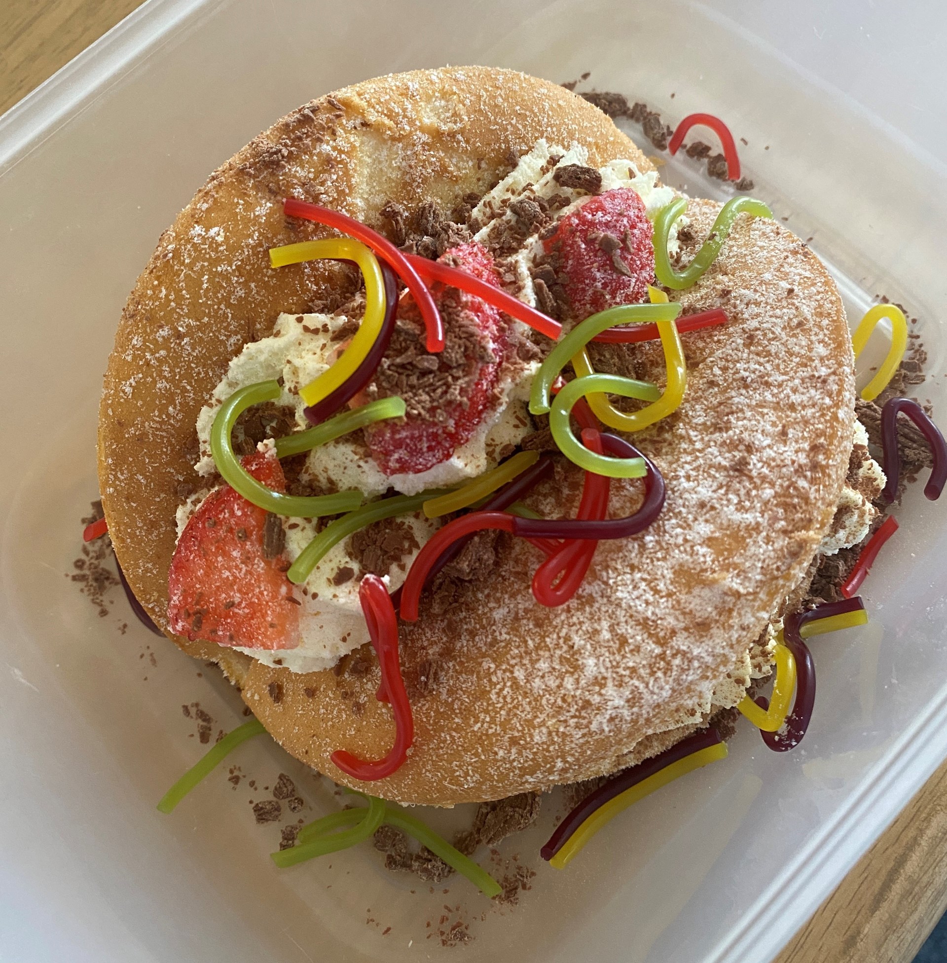 The next entry was Rosie’s Victoria sponge cake with cream, strawberries, and rainbow sweets.